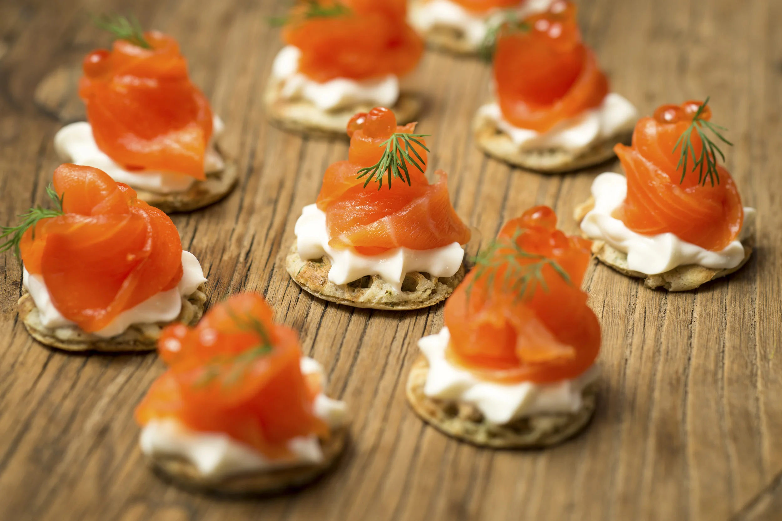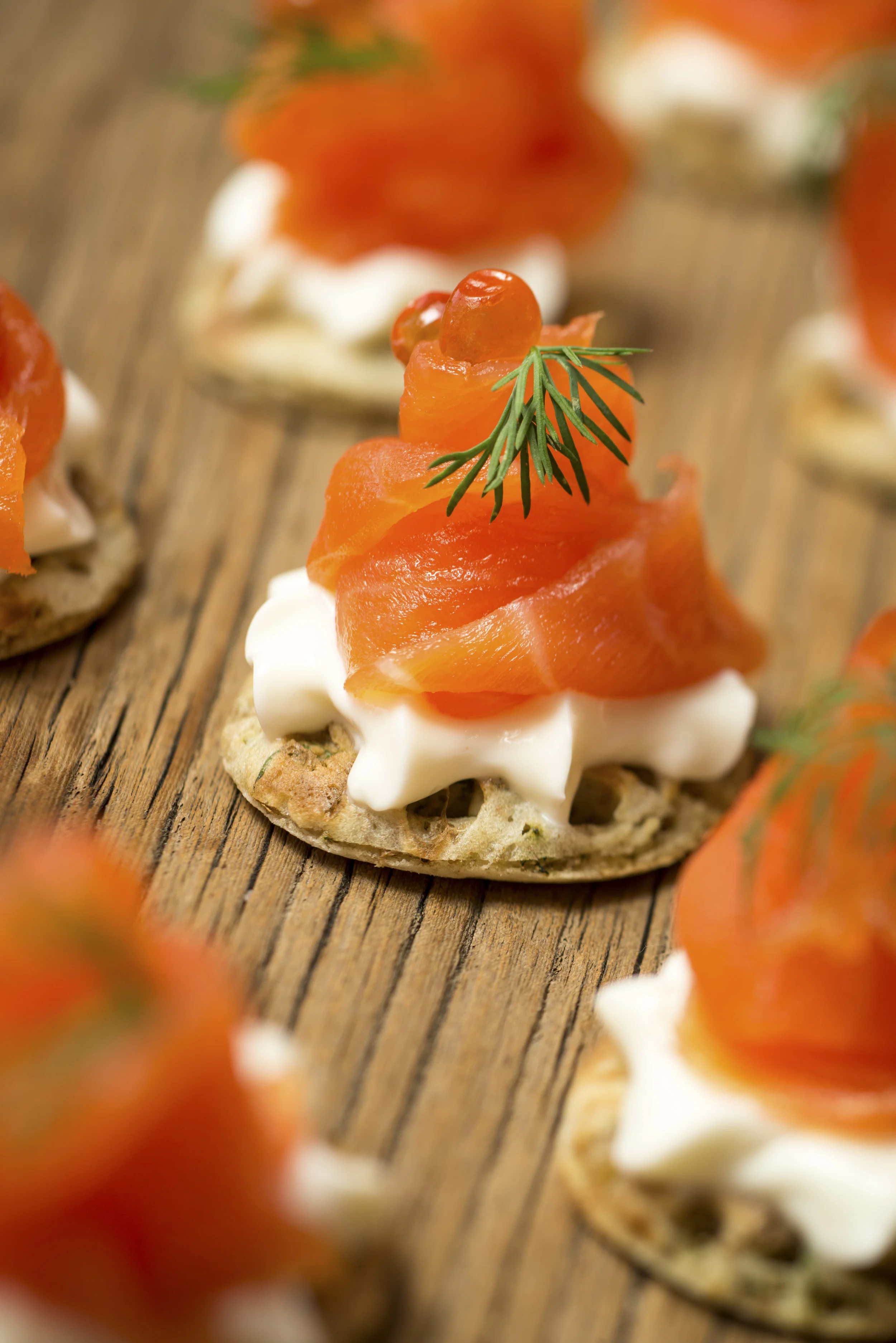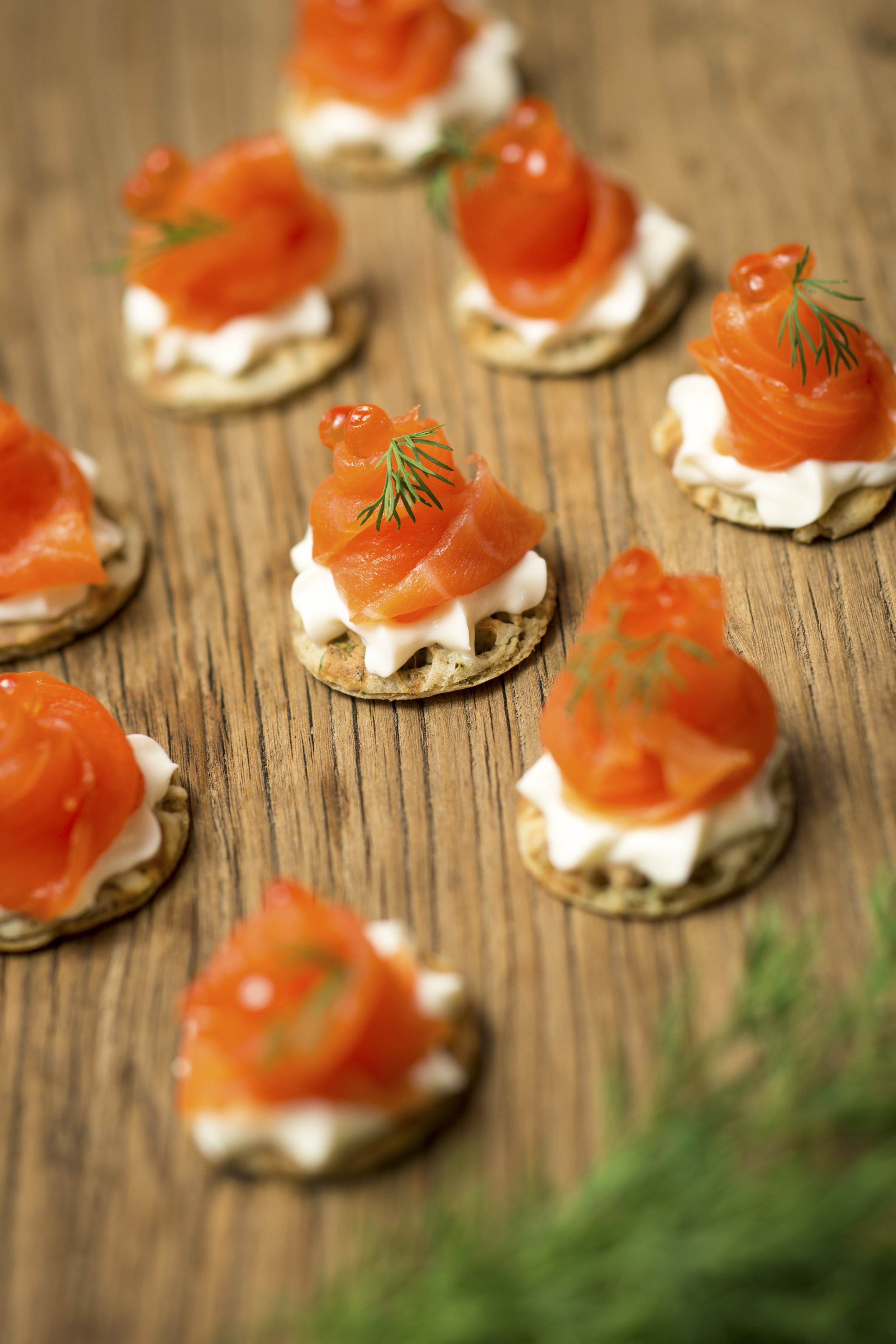 - Ajoutez une petite cuillère de crème sur les blinis, faites de jolis rouleaux de saumon fumé sur le dessus et bonne dégustation de Noel.